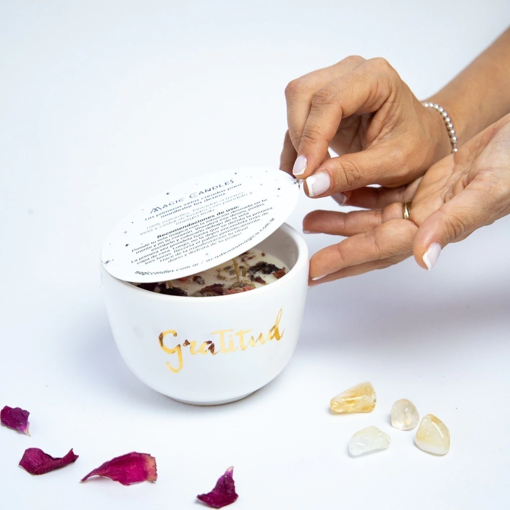 Encender esta vela es un acto de reconocimiento y amor: un momento para agradecer por lo que sos, lo que tenés y lo que está llegando. Su luz despierta la certeza de que un corazón agradecido es capaz de poner en movimiento la energía necesaria para atraer aún más milagros y plenitud.
