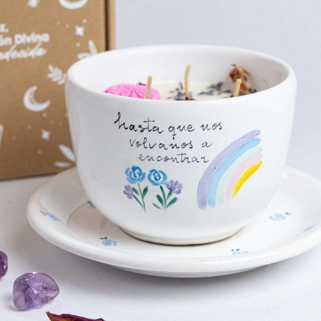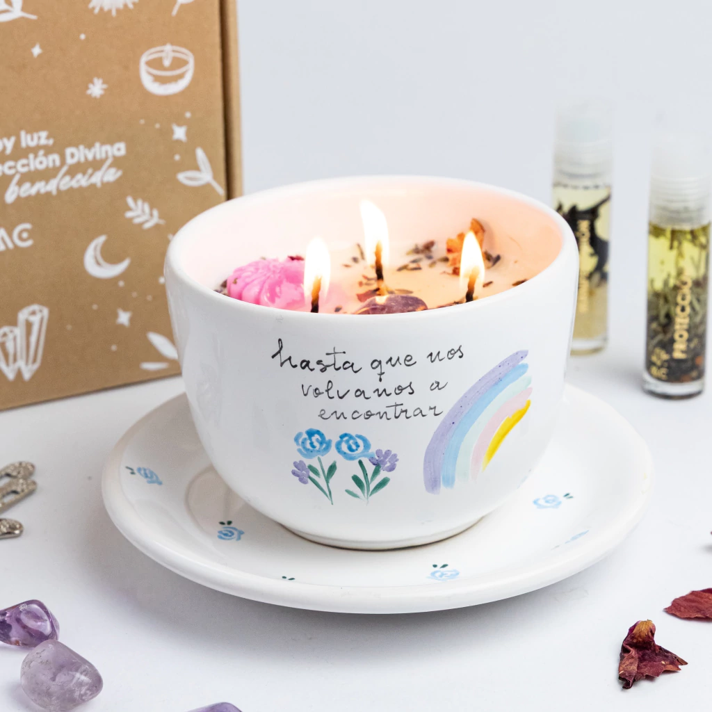 Al encenderla, creás un puente de luz y gratitud, uniendo tu corazón con el alma de quien amás. Es un momento de calma, oración y homenaje, donde el cielo y la tierra se encuentran bajo el resplandor del arco iris divino.